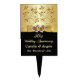 This elegant black and gold floral 50th wedding anniversary cake topper pick has a PRINTED gold metallic look ribbon and bow with a pair of PRINTED glitter and diamond jeweled joined hearts on it. This elegant and unique cake topper would add a crowning glory to your golden wedding anniversary cake. The text is customizable. If you need any changes, please email niteowlstudio@gmail.com.