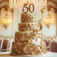 CELEBRATE A MAJOR MILESTONE OF 50 YEARS OF MARRIAGE! LOVELY GOLD TRIMMED CAKE AS GOLD IS FOR 50 YEARS!