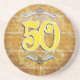 Show off your surprised parties with this 50th Happy Anniversary Coasters. Gold color crinkle cut designed circle with designed large numbers of "50" and the background has; Happy Anniversary in white font letters.