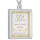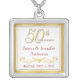 50th Anniversary Keepsake Necklace -- Elegant Golden 50th Wedding Anniversary Pendant with formal script and scrolled antique design -- Customize the names and date for your happy celebration. Perfect gift for your wife, mother, grandmother to commemorate 50 Golden Years together. Matching cards, invitations, postage and gifts available. Other styles and customizations available upon request.