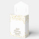 Elegant 50th golden wedding anniversary favor box featuring gold hearts confetti scattered across your names, special date and thank you message set in modern typography. A perfect way to say thank you to your guests! Designed by Thisisnotme©