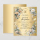 A faux gold looking background. Decorated with white and yellow florals and a golden ribbon. Personalize and add your names and details.