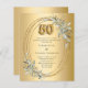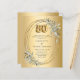 A faux gold looking background. An oval golden frame decorated with sage green greenery. Personalize and add your names, details. Black text.