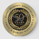 The gold laurel wreath and black accent modern customizable 50th wedding Anniversary template design. Easily customize your names and dates of your Anniversary.