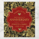 Celebrate your 50th weeding anniversary with custom wine battle label. Shiny gold damasks pattern over black background and dark red background for customizable text template for your wedding celebration.