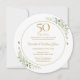 Plain white envelopes are included with paper invitations and will come to fit the invitation size you select. If you don’t need the envelopes, you may choose to not receive them by selecting the dropdown below "Envelopes" and choosing "None." If you’d like to have a design on your envelopes, you can browse all of these available envelopes to find the design that complements your 50th Wedding Anniversary Greenery Circular Invitation.