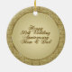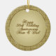 A Digitalbcon Images Design featuring an elegant gold color theme with an equally elegant Anniversary Greeting to that very special couple. This ornament is sure to be a great memorable addition to your ornament collection, Christmas tree decoration or curio cabinet.
