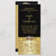 This elegant black and gold floral 50th wedding anniversary vow renewal program or order of service card has a PRINTED RIBBON and BOW with a pair of PRINTED FAUX glitter and diamond jewel joined hearts on it that matches the golden wedding anniversary invitation shown below. You can also change the text to be a menu card, or schedule of events card. If you require any assistance customizing this with your details, or if you need any other matching items, please email niteowlstudio@gmail.com.