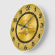 A Digitalbcon Images Design featuring a gold and black color theme with a variety of custom images, shapes, patterns, styles and fonts in this one-of-a-kind "Golden Wedding Anniversary" Clock. This elegant and attractive design comes complete with special text lettering "Happy Anniversary - Mom & Dad and a special 50th Wedding Anniversary Insignia on the clock face to complete this ideal gift for your parents on their special occasion.