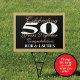 Celebrating 50th anniversary coroplast yard sign. Make sure you select the stake choice when ordering. Easy set up, just insert the stake into the bottom flutes of the sign and push into the ground.
