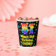 This cheerful and colorful birthday-themed paper cup design features a large number “51” having a rainbow spectrum gradient inspired pattern. It also features the message “Happy 51st Birthday,”, and a customizable name. The background features an exciting and colorful star field inspired pattern. Vibrant, colorful paper cups like this might be fun to use at a birthday celebration/party being held to celebrate somebody’s fifty first birthday. [~Z0000540]