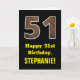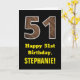 51st Birthday: Name, Faux Wood Grain Pattern "51" Card
