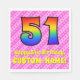 This fun and festive 51st birthday themed paper napkin design features a large number "51" having a colorful pattern inspired by the look of a rainbow spectrum. It also features the message "Happy 51st Birthday,", and a customizable name. The background features a dark pink and light pink stripes pattern containing loving pink heart shapes. Birthday themed paper napkins like this might be used at a party celebrating somebody’s 51st birthday. [~Z0000417]