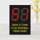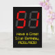 The front of this nerdy and geeky birthday greeting card design features a large number "51" having a red seven segment digital display style appearance, along with the message "Have a Great 51st Birthday," and an editable name, on a black colored background. The inside features an editable birthday greeting message, or could perhaps be cleared and left blank if a message is to be written by hand instead. A personalized birthday card like this might be a fun way to acknowledge somebody’s fifty first birthday. [~Z0000386]