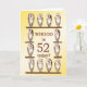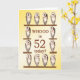 52nd birthday card. Curious owls turning their heads to look at you and asking 'Who has a birthday today?'. A funny birthday card for anybody who likes owls. The owls shown are barn owls.
