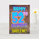 The front of this fun birthday themed greeting card design features the message “HAPPY 52ND BIRTHDAY,” having a colorful, vibrant, graffiti and urban street art inspired look, in addition to a custom recipient name. The background of the front features a pattern inspired by the look of a brick wall. The inside has a custom birthday greeting message, or could perhaps be cleared and left blank if a message is to be written by hand instead. A fun, customizable birthday greeting card like this might be sent to celebrate somebody’s fifty-second birthday. [~Z0000531]