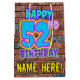 The front of this fun birthday themed gift bag design features the message “HAPPY 52ND BIRTHDAY,” having a colorful, vibrant, graffiti and urban street art inspired look, plus a customizable recipient name. The background features a brick wall inspired pattern. A gift-bag like this might be a fun way of wrapping a birthday present or gift being given to somebody who is celebrating their 52nd birthday. [~Z0000536]
