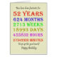 52nd birthday card counting down the years, days, months, hours, and minutes. A card to give pause for thought! Leap years have been taken into account!