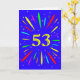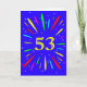 An explosive 53rd birthday card! What a wonderful way to send birthday greetings. The number 53 in bright yellow with an explosion of bright colors and stars.