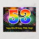 53rd Birthday – Fun Fireworks Pattern + Rainbow 53 Postcard