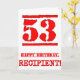 This fun birthday greeting card design features a large red number “53” having a rubber stamp inspired appearance, in addition to the birthday greeting message “HAPPY BIRTHDAY,” and a custom name on the front. The inside has a personalized birthday greeting message, or could perhaps be cleared and left blank if a message is to be written by hand instead. A fun customized birthday greeting card like this might be used to acknowledge somebody’s fifty-third birthday. [~Z0000524]
