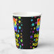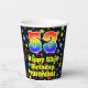This joyful and exciting birthday-themed paper cup design features a large number “53” with a rainbow spectrum gradient inspired pattern, along with the message “Happy 53rd Birthday,”, and a custom name. The background features a colorful pattern featuring many star shapes with different colors and sizes. Colorful, vibrant paper cups like this might be fun to use at a birthday celebration being held to honor somebody’s 53rd birthday. [~Z0000540]