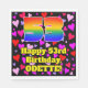 This colorful and happy birthday themed paper napkin design features a large number “53” with a rainbow spectrum gradient inspired pattern, along with the message “Happy 53rd Birthday,”, and a custom name. The background features a pattern of heart shapes with colors like red, purple, and pink. Joyful, fun paper napkins like this might be fun to use at a birthday party being held to honor somebody’s 53rd birthday. [~Z0000550]