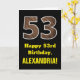53rd Birthday: Name, Faux Wood Grain Pattern "53" Card