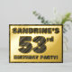The front of this bold fifty-third birthday celebration foil invitation card features a customizable name, a large number “53rd”, the message “BIRTHDAY PARTY!”, and a border, all featuring a rustic, yet elegant, faux wood grain look inspired pattern. The back features personalized details about the event, such as the date, time, location, and any other important information. Customizable invitations like these might be used to invite attendees to a birthday party being held in celebration of somebody’s 53rd birthday. [~Z0000595]