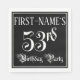 This fancy and luxurious birthday themed paper napkin design features a custom name and the message “53rd Birthday Party”. The large number “53rd” and the words “Birthday Party” are in elaborate script-style text, and the background is colored black by default (although it can be customized). Ornate, opulent paper napkins like this might be useful at a birthday party being held to celebrate somebody’s fifty third birthday. [~Z0000563]