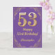 53rd Birthday Purple and Gold Glitter Frame. For further customization, please click the "Customize it" button and use our design tool to modify this template.
