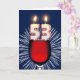 A birthday glass of wine with candles. The candles are made up of the number 53, for an 53rd birthday. Fireworks are exploding in the background. A birthday card suitable for anybody, male or female.