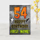 The front of this scary and spooky Halloween themed birthday greeting card design features a large number “54”. It also features the message “HAPPY BIRTHDAY,”, plus a customizable name. There are also depictions of a ghost and a bat on the front. The inside features a customizable birthday greeting message, or could perhaps be cleared and left blank if a message is to be written by hand instead. A customizable birthday card like this might be a fun way to acknowledge somebody’s fifty fourth birthday that also falls on October 31st (Halloween). [~Z0000547]