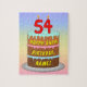 This joyful and fun birthday jigsaw puzzle design features a cartoon-style depiction of a three-tier birthday cake having number-shaped candles on top showing the age “54“, along with the message “HAPPY 54TH BIRTHDAY,”, and a customizable recipient name. The background features a multi-color pastel rainbow spectrum inspired gradient pattern. A cheerful, personalized birthday puzzle like this might be a fun way to send birthday greetings to somebody who is celebrating their fifty-fourth birthday. [~Z0000621]