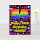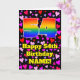 The front of this fun and colorful birthday-themed greeting card design features a large number “54” having a rainbow spectrum gradient inspired pattern. It also features the message “Happy 54th Birthday,”, and a customizable name. The background of the front features a pattern of red, pink, and purple heart shapes of various sizes. The inside has a customizable birthday greeting message, or could perhaps be cleared and left blank if a message is to be written by hand instead. A happy, customized birthday greeting card like this might be sent in celebration of somebody’s fifty-fourth birthday. [~Z0000551]