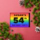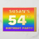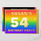 The front of this eye-catching and joyful fifty-fourth birthday celebration foil invitation card design features a custom name, a large number “54th”, the message “BIRTHDAY PARTY!”, and a border. The background of the front features an upbeat, colorful, rainbow spectrum inspired gradient pattern. The back features personalized details about the event, such as the date, time, location, and any other useful information. Personalized invitations like these might be a fun way to invite guests/attendees to a birthday party being held to celebrate somebody’s 54th birthday. [~Z0000599]