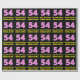 This fun and joyful birthday themed wrapping paper design features a large number "54" with a striped pattern containing heart shapes colored dark pink and light pink. It also features the birthday greeting message "Happy 54th Birthday,", and a customizable recipient name. Birthday themed wrapping paper like this might be a fun way to wrap a gift or present being given to celebrate somebody’s 54th birthday. It might also be a fun choice for somebody who has a birthday that falls on Feb. 14 (Valentine's Day), due to its loving heart symbols and colors. [~Z0000435]