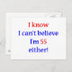 I know, I can't believe I'm 55 either! Humorous design for the 55 year old who knows they don't look 55. Makes a great 55th birthday gift.