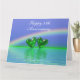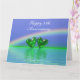 "Happy 55th anniversary" card with emerald hearts floating on the water under a rainbow, and customizable verse inside.