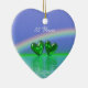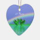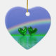 Ornament with my image of two emerald hearts floating on the water under a rainbow with text that says "55 Years".