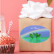 Oval stickers with my original design of emerald hearts floating on the water under a rainbow with text that says "55 Years".