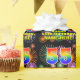 This multicolored and cheerful birthday-themed wrapping paper design features a large number “55” having a colorful rainbow spectrum gradient inspired pattern. It also features the message “Happy 55th Birthday,”, and an editable name. The background features a vibrant and colorful bursting celebratory fireworks inspired pattern. Wrapping paper like this might be used when giving a gift or present in honor of somebody’s fifty fifth birthday. [~Z0000587]