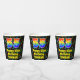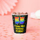 This fun and colorful music themed birthday paper cup design features a large number “55” with a rainbow spectrum gradient inspired pattern, along with the message “Happy 55th Birthday,”, and a custom name. The background features an exciting and colorful music notes and symbols pattern. Vibrant, colorful paper cups like this might be fun to have at a birthday celebration being held in celebration of somebody’s 55th birthday. [~Z0000541]