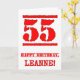 This fun birthday greeting card design features a large red number “55” having a rubber stamp inspired appearance, plus the birthday greeting message “HAPPY BIRTHDAY,” and a personalized name on the front. The inside has a personalized birthday greeting message, or could perhaps be cleared and left blank if a message is to be written by hand instead. A fun customizable birthday greeting card like this might be a fun way to deliver birthday greetings to somebody who is celebrating their fifty-fifth birthday. [~Z0000524]