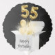 Gold balloons with sparkles and ribbons in a white box on black background for 55th birthday party.