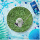 Golf ball on green grass with golf club for golfer's 55th birthday party.