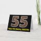 The front of this fun and rustic birthday-themed greeting card design features a large number "55" with an imitation wood grain inspired look pattern, along with the message "Happy 55th Birthday,", and a custom name. The inside features a customized birthday greeting message, or could perhaps be cleared and left blank if a message is to be written by hand instead. A customizable birthday card like this might be a fun way to send a message in celebration of somebody’s fifty fifth birthday. [~Z0000431]