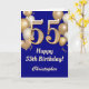 55th Birthday Navy Blue and Gold Balloons Confetti Card. For further customization, please click the "Customize it" button and use our design tool to modify this template.
