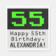 This fun and nerdy birthday-themed paper napkin design features a large green retro computer game style number "55" on a black colored background. It also features the birthday greeting message "Happy 55th Birthday,", and an editable name. Silly and geeky paper napkins like this might be used at a party being held to celebrate the fifty fifth birthday of a computer system administrator, an engineer, or somebody who really likes computer games. [~Z0000404]