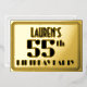 The front of this elegant and Roaring Twenties era inspired fifty-fifth birthday party foil invitation card design features a customizable name, an art deco look inspired number “55th”, the message “BIRTHDAY PARTY”, and a border pattern consisting of lines. The back features personalized details about the event, such as the venue, date, time, and any other information that may be important. Luxurious, stylish, customized invitations like these might be used to invite guests to a birthday gathering/party being held to celebrate somebody’s 55th birthday. [~Z0000606]